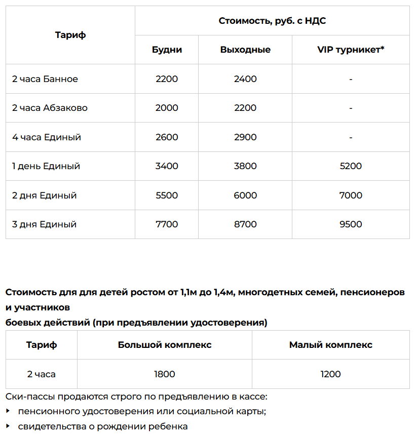 Стоимость скипасса ГЛЦ Банное (Металлург-Магнитогорск)