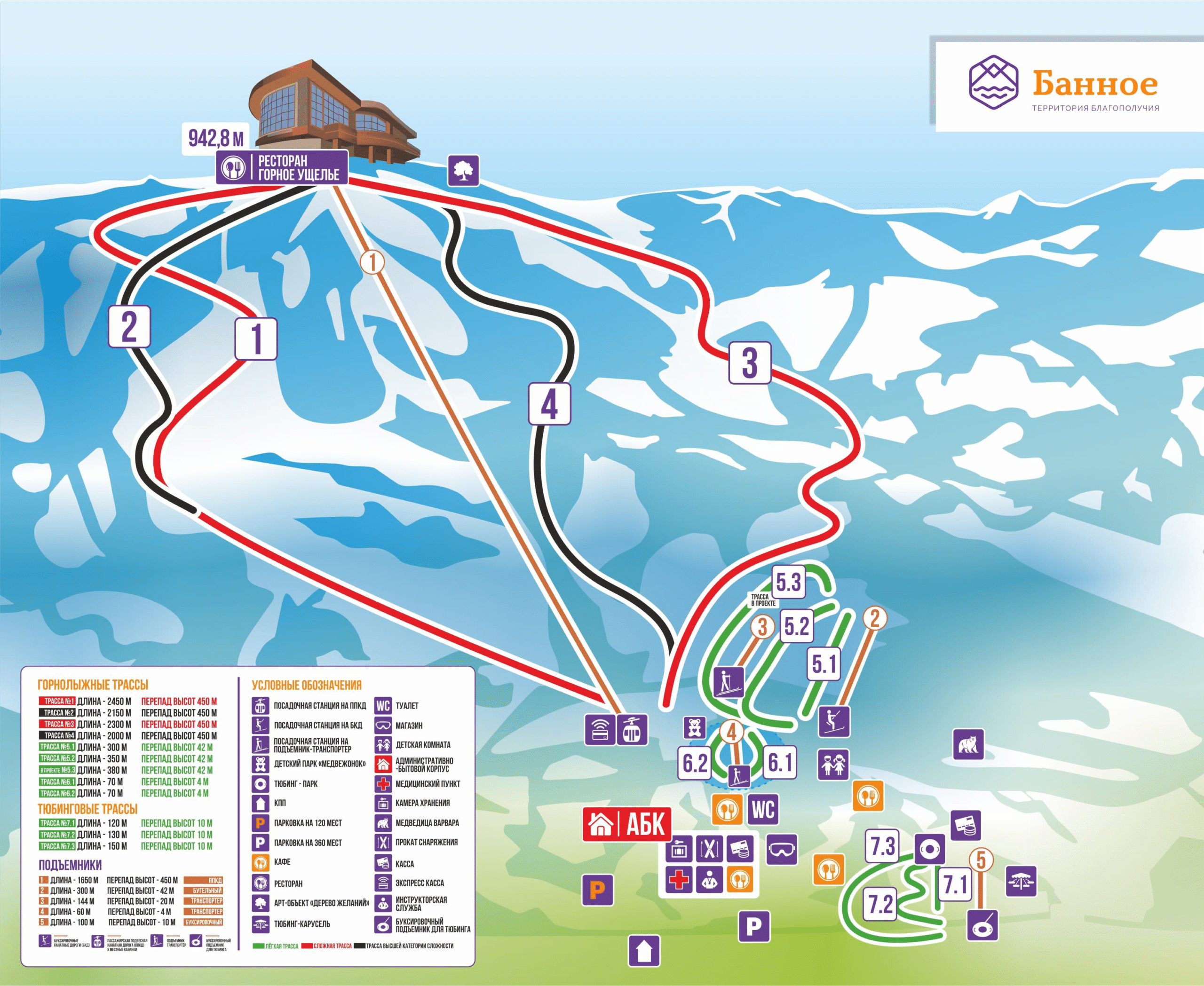 Курорт «Банное» предлагает разнообразные спуски: