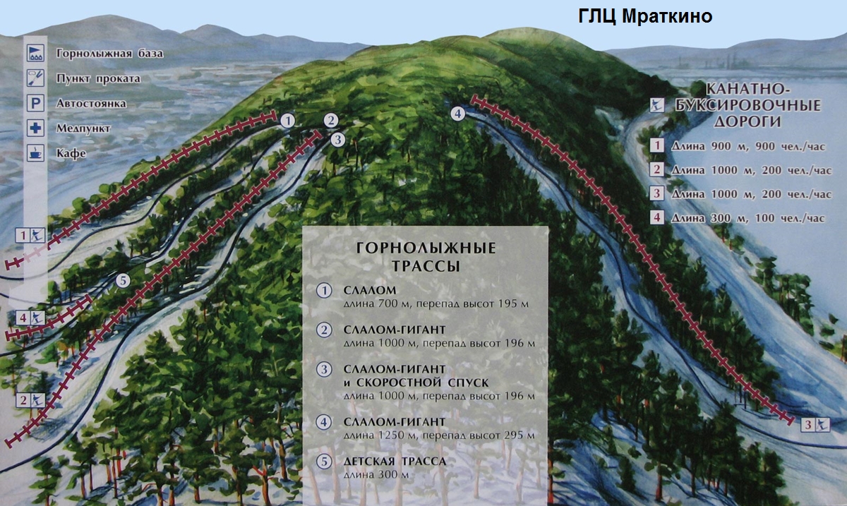 Схема трасс на горнолыжном курорте «Мраткино». Источник: mratkino.ski-rb.ru